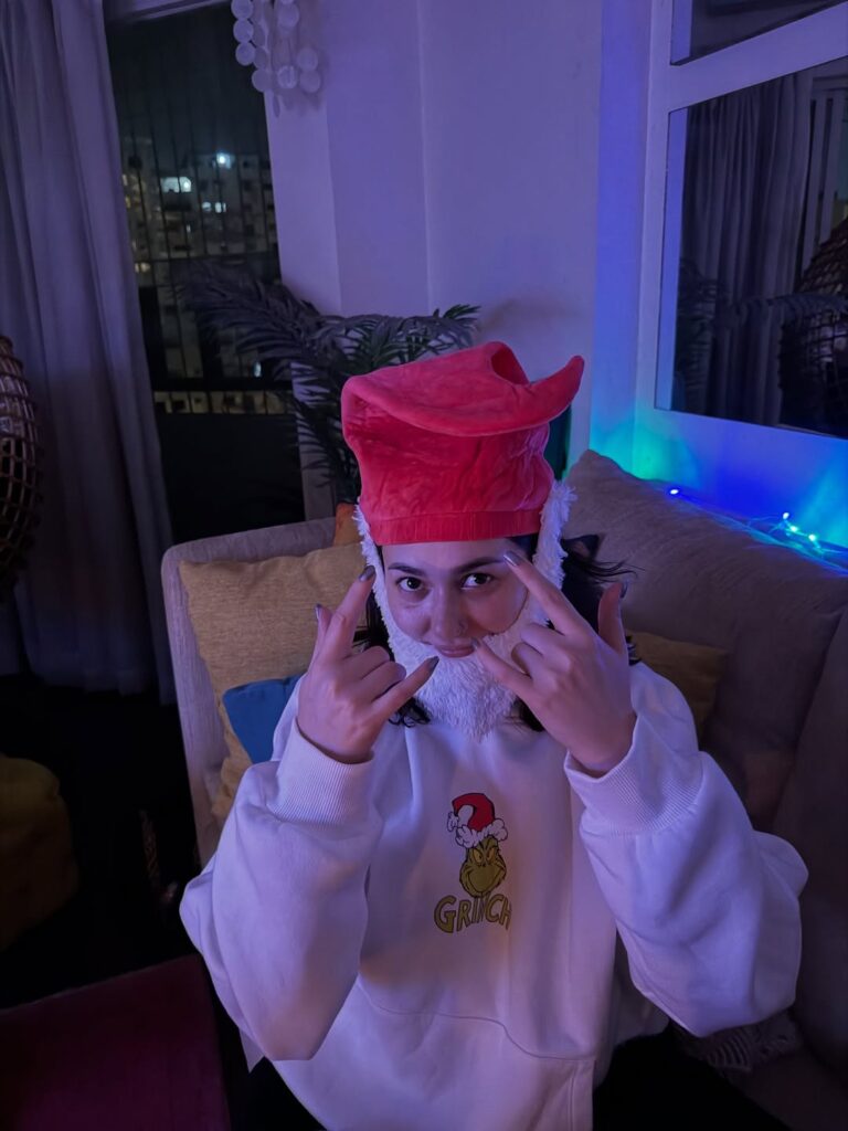 Hania delighted fans by playfully dressing up as Santa Claus, complete with a red outfit, hat, and faux beard—adding a fun and light-hearted touch to the celebration.