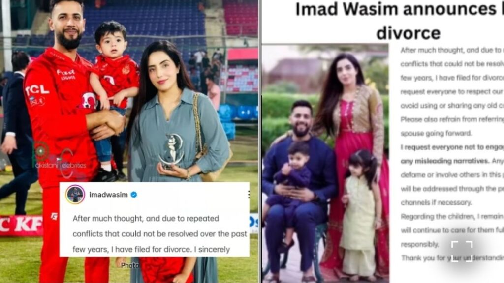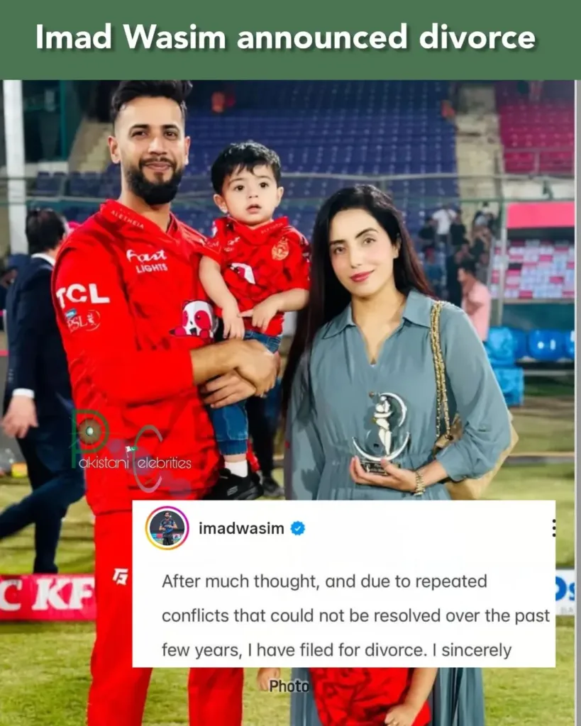 Pakistani cricketer Imad Wasim has officially announced his divorce through a public statement shared on social media. According to Imad, the decision was made after much thought due to ongoing conflicts that could not be resolved over the past few years.