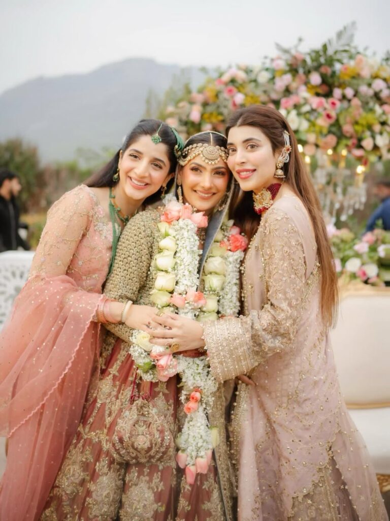 Urwa Hocane and Mawra Hocane were spotted at their friend Sarah’s wedding, making the event even more special with their presence. Sarah is a childhood friend of both Urwa and Mawra, which made their appearance at her big day truly meaningful. The sisters looked exceptionally beautiful, wearing elegant outfits paired with stunning and eye-catching jewelry that gave major fashion show vibes. Their flawless styling and graceful looks instantly grabbed attention, while fans loved seeing them celebrate together. Urwa and Mawra also posed for several pictures with their bride friend, adding charm and warmth to the celebrations and making Sarah’s wedding unforgettable by attending together as a duo.